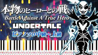 『本物のヒーローとの戦い(Battle Against A True Hero)』作曲:Toby Fox トビー・フォックス制作によるコンピュータRPG「アンダーテール(Undertale)」の楽曲のひとつです。ゲーム内の全てのモンスターを倒すことで突入できるGルート(Genocide Route)において登場するボス「ふじみのアンダイン (Undyne the Undying)」との戦闘で流れるBGMです。ピアノやトランペットの印象的な旋律が特徴で、勇ましさの中にどこか物悲しさを感じさせる雰囲気を持っています。暗く重厚な空気の中でもなお力強く立ち向かう「ふじみのアンダイン」の決意と覚悟が表現されています。その完成度の高さから、ファンの間でも非常に人気が高く、「MEGALOVANIA」、「華麗なる死闘」、「夢と希望」などと並ぶ名曲の一つとして高く評価されています。